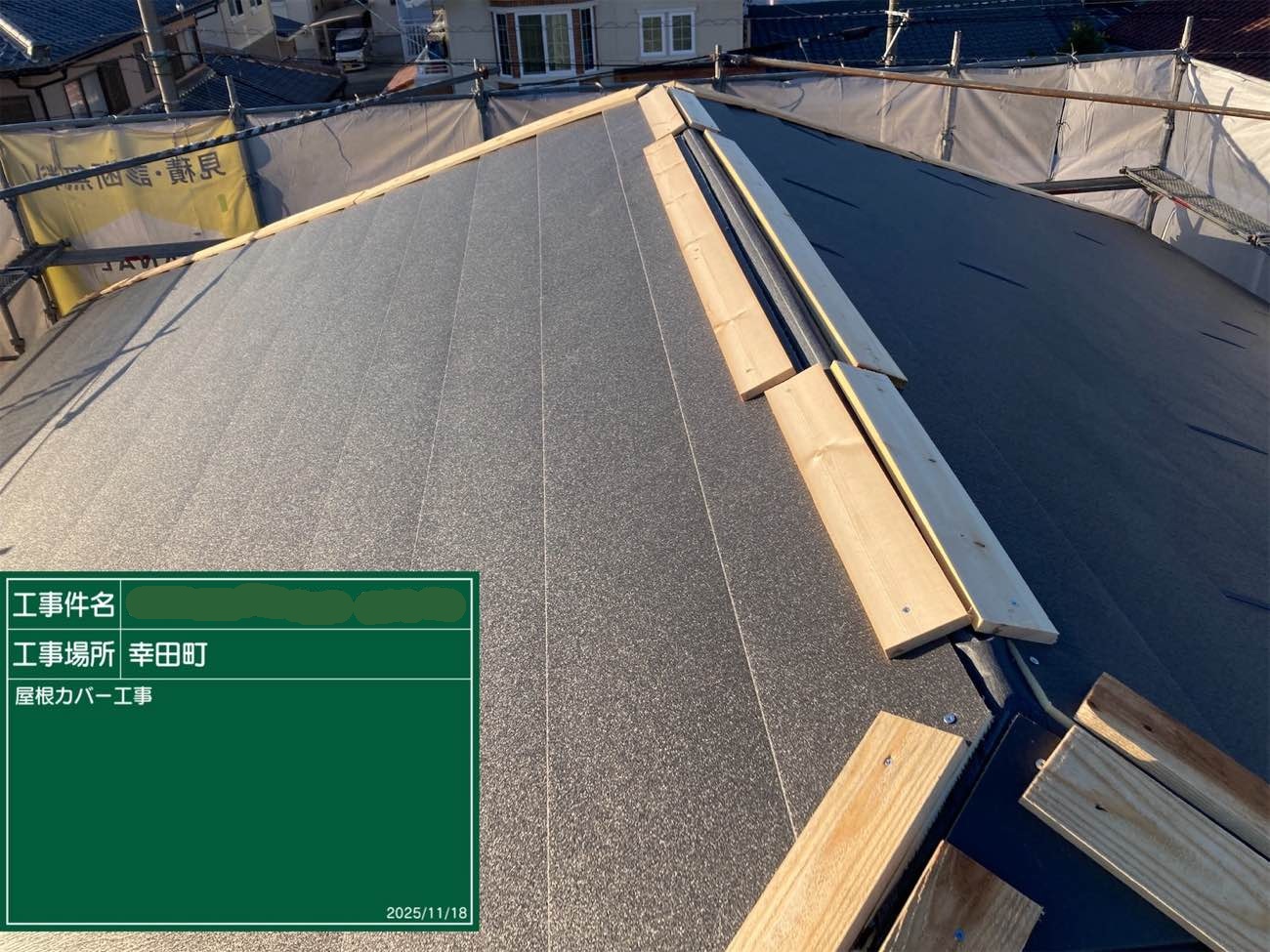 屋根カバー 棟板設置