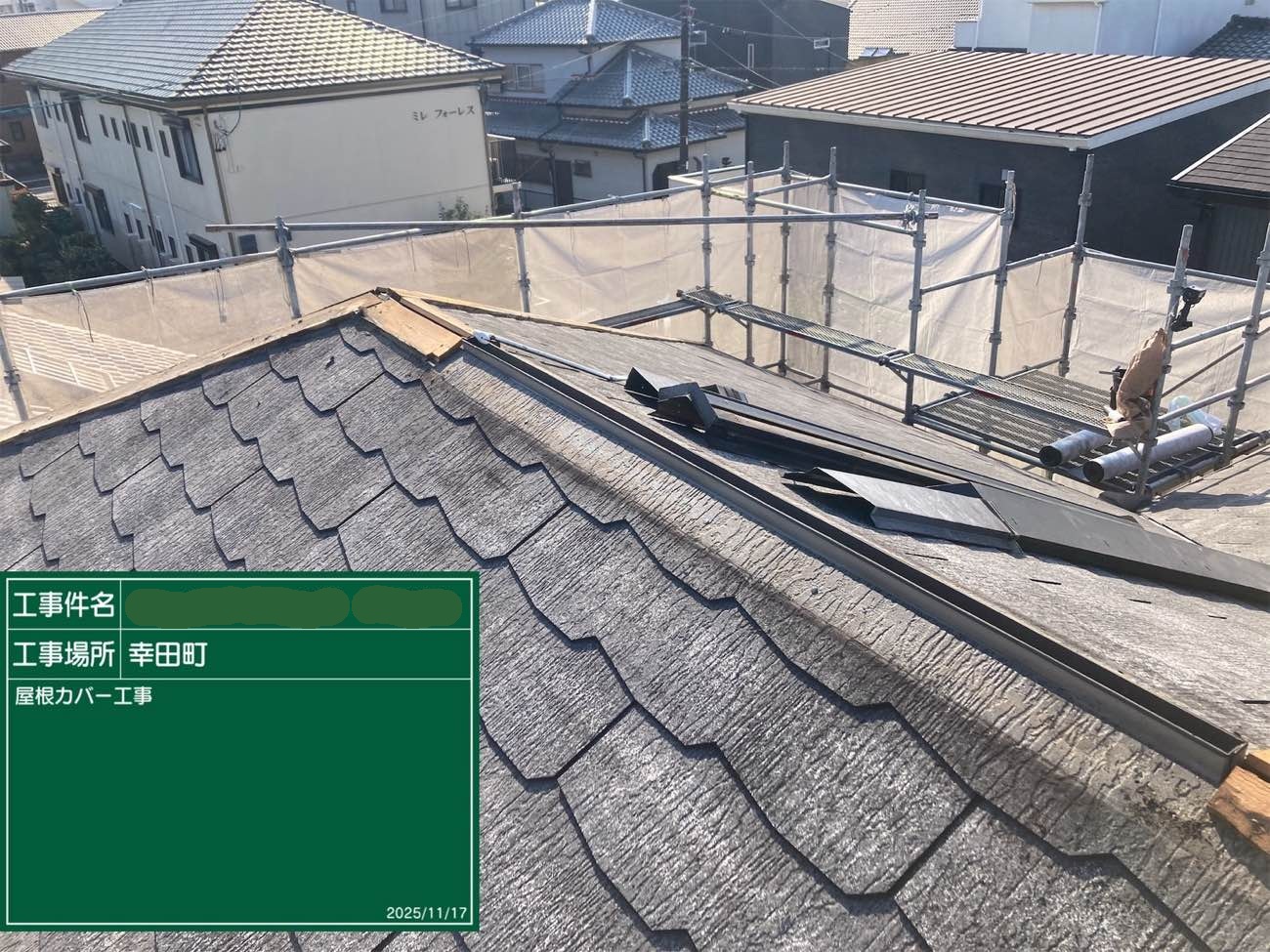 屋根カバー 既設棟板撤去