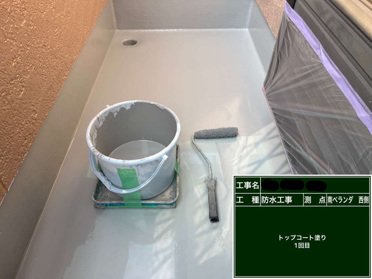 ベランダ防水 トップコート1回目