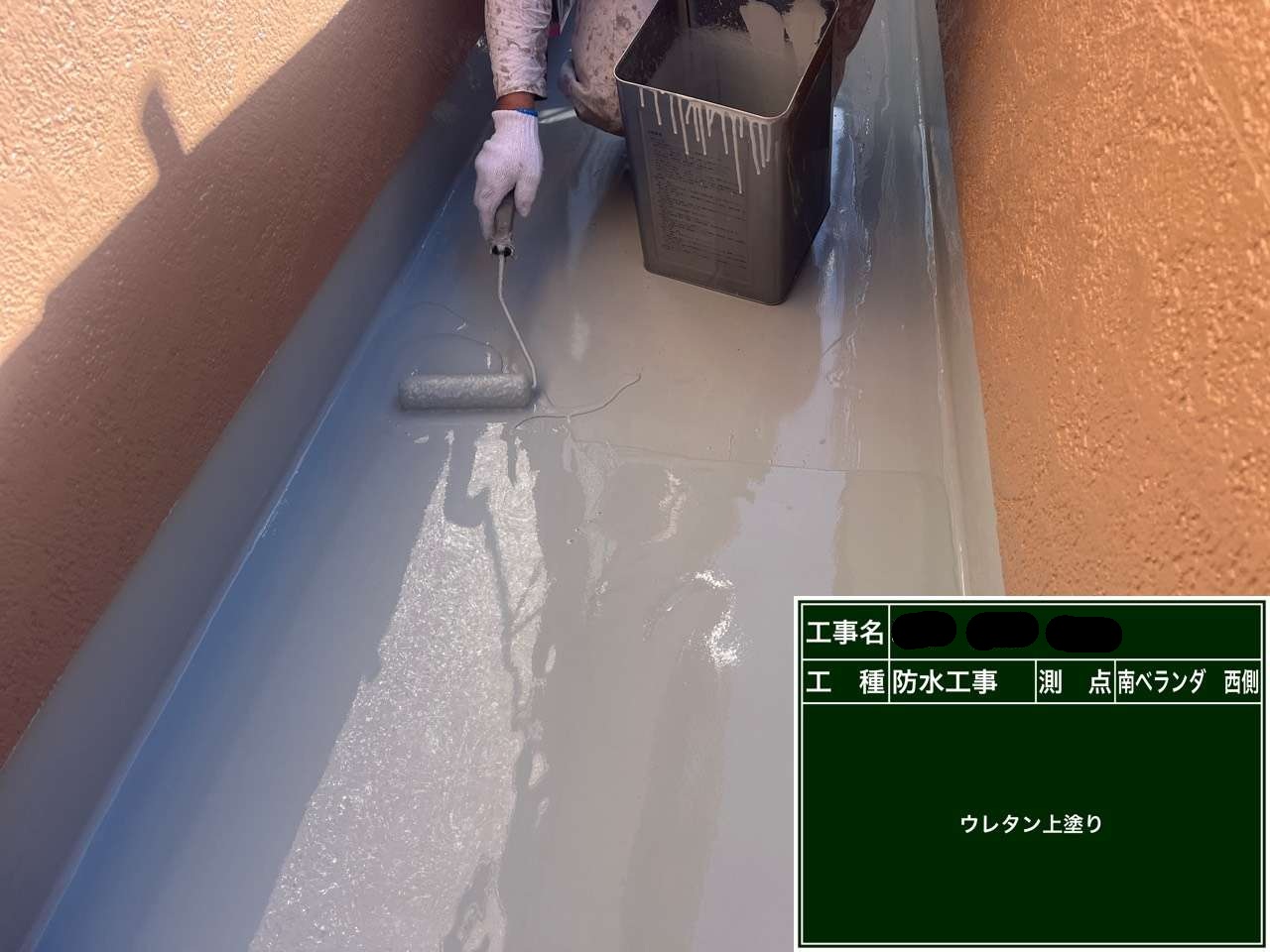 ベランダ防水 ウレタン中塗り