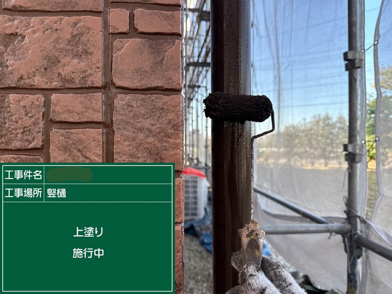 竪樋 上塗り