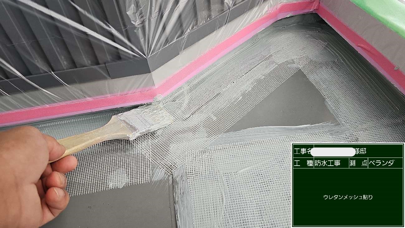 防水工事 ウレタンメッシュ貼り