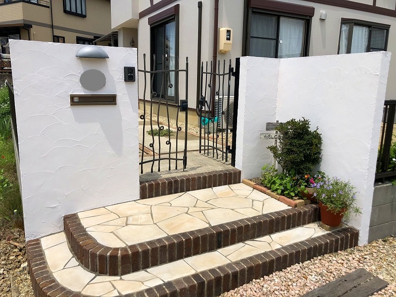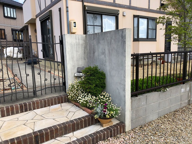 塗り壁の模様もくっきり見える美しい門塀になりました。