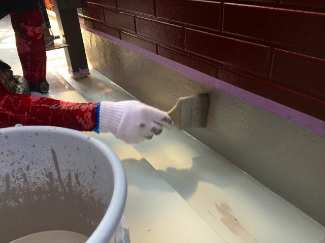 下地シートにウレタン塗膜を塗り重ねる防水です。