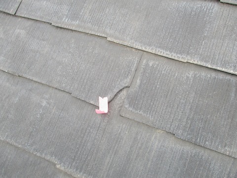 まず足場の設置後ですが、屋根の状態や足場がないと見ることができない箇所などを一通り確認をさせて頂きます。築10年程経っているスレート屋根のお宅には屋根材のヒビ割れや欠けなどがよく見受けられます。