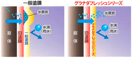 水蒸気として外部に排出し、塗膜の膨れを防止します👍