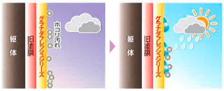 塗膜を破壊するラジカルを捕まえるHALS(光安定剤)という成分により、