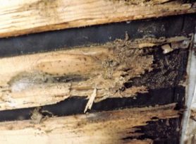 そこからシロアリが侵入し、餌場を見つけたシロアリがフェロモンで
