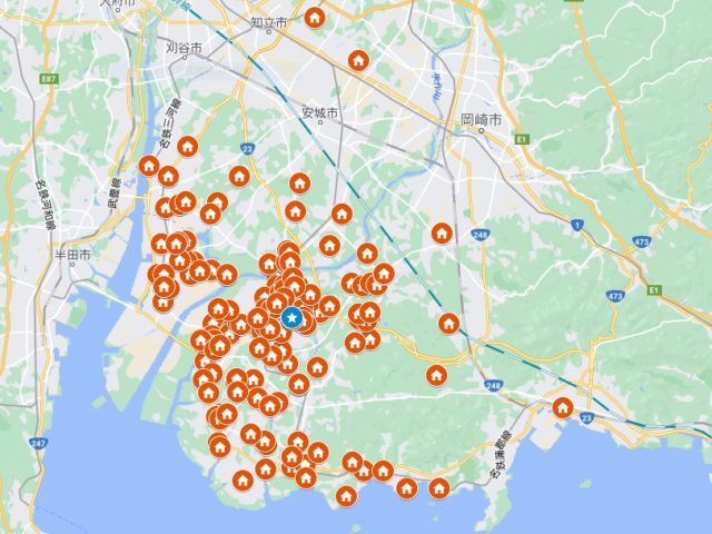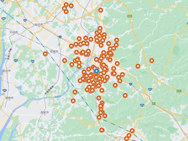 カナルペイント岡崎店年間施工実績MAP
