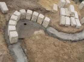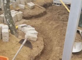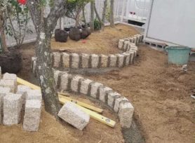 花壇見切りを形成するために下地を整え、