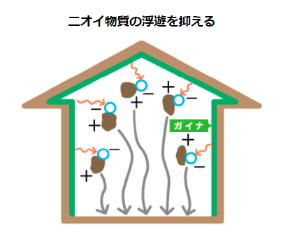 マイナスイオン化させる効果があり、これによって空気中に漂っている