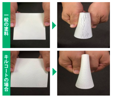 上記の写真のように、一般的な塗料では塗膜が割れてしまうところキルコは塗膜が割れていません👏