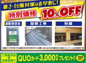 【カナルペイント全店舗】暑さ・台風対策!特別価格10%offキャンペーンのご案内✨