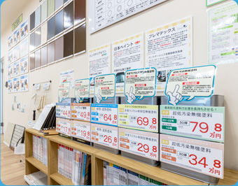 塗料にもたくさんの色と付随する機能があります。見本も多数ご用意しております。