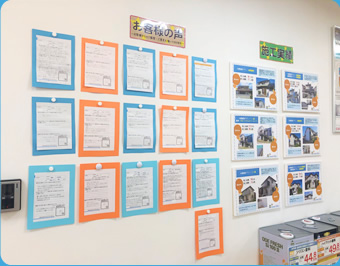打ち合わせスペースは家模型や色見本、POPを見ながら詳しいお話ができます。