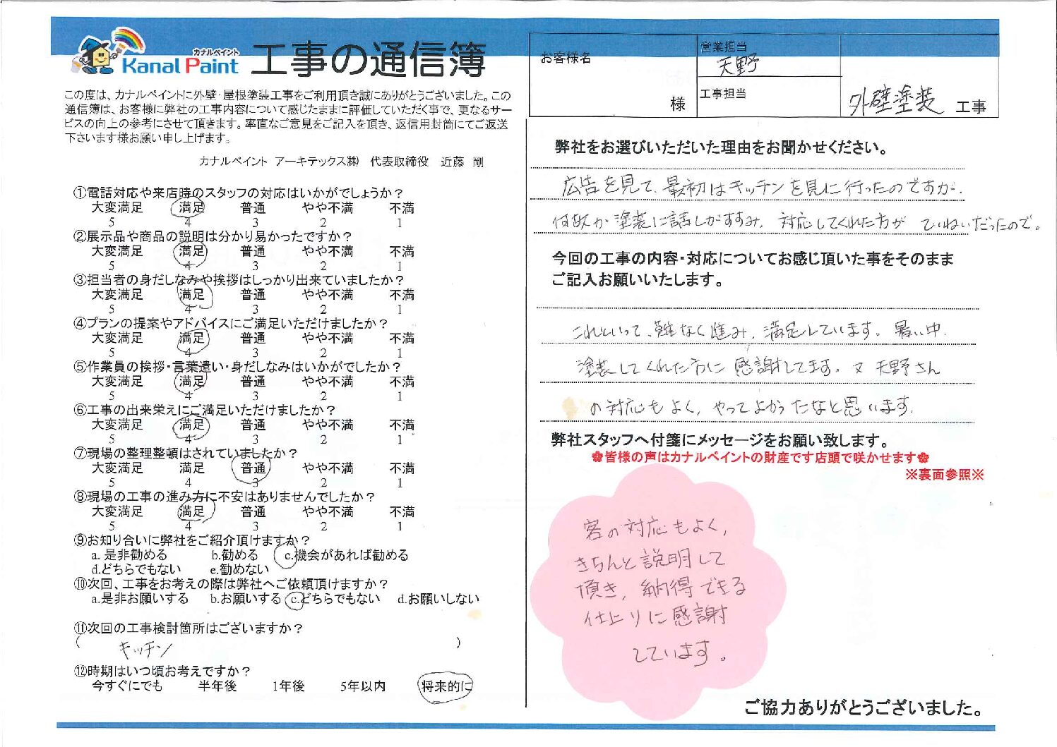 広告を見て、最初はキッチンを見に行ったのですが、何故か塗装に話がすすみ、対応してくれた方がていねいだったので。