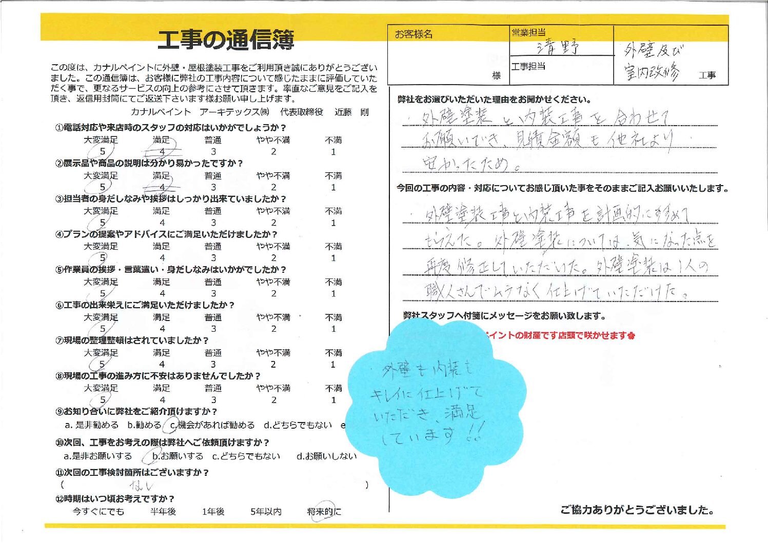 外壁も内装もキレイに仕上げていただき、満足しています!!