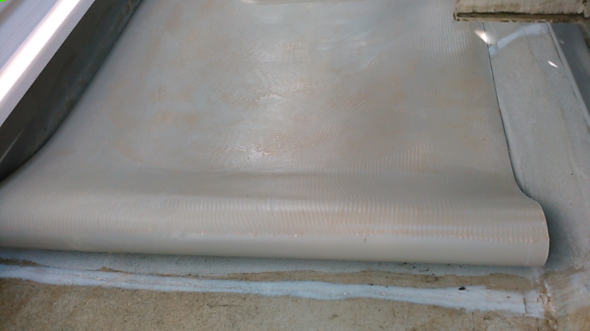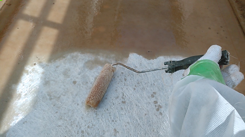 FRP(ガラス繊維強化プラスチック)防水とは、防水用ポリエステル樹脂と防水用ガラスマットでつくられた防水層で、耐衝撃性・耐摩耗性に優れている防水工法です。