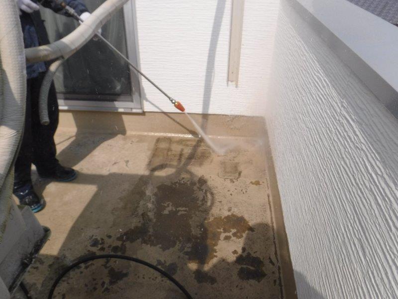 表面をきれいにするため、高圧洗浄を行います。