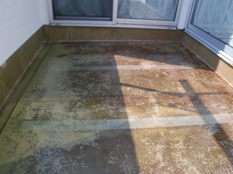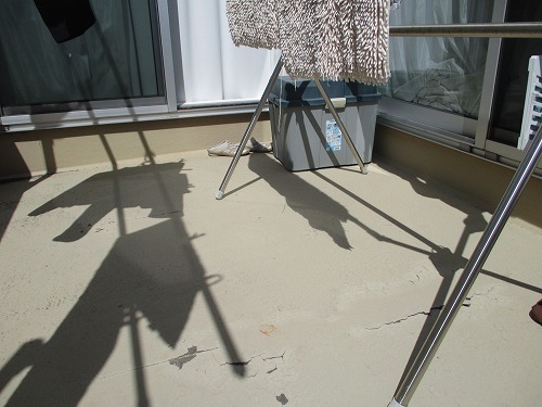 ベランダ防水の一部がはがれ、ひび割れてしまっています。