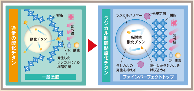 ラジカルという劣化因子が発生し、塗膜劣化を招いていました。