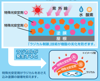 発生したラジカルをおさえこみ塗膜劣化を抑制する効果があります。