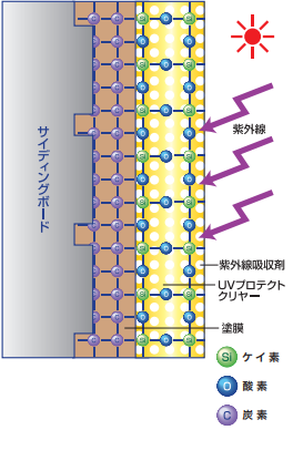 ケイ素と酸素の結合が強力なため、紫外線による劣化がほとんどなく