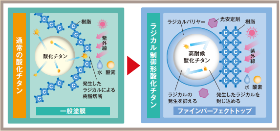 塗膜劣化の原因となるラジカルという劣化因子の発生を抑制させるので