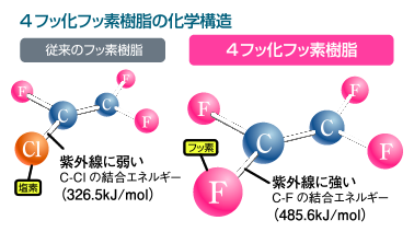 従来のフッ素塗料には紫外線に弱い塩素が含まれており、