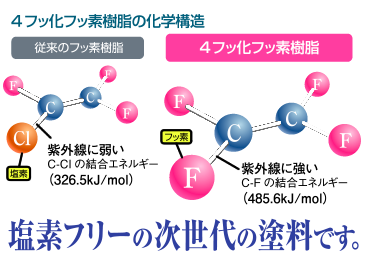 従来のフッ素塗料には塩素という紫外線に弱い成分が