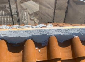 漆喰を入れ、棟瓦がしっかりと接着するようにします🏋️♂️